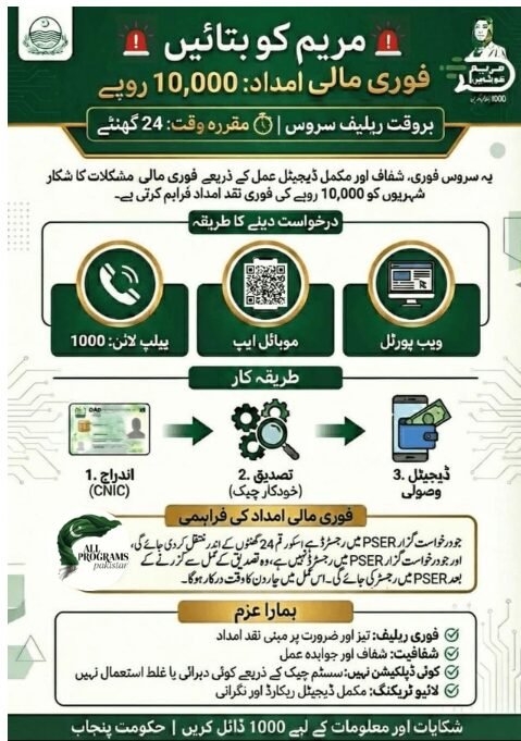 Applicants must provide CNIC, personal details, request explanation, and digital wallet information like JazzCash or Easypaisa. Those already registered in PSER may get funds quickly, while others may wait up to four days. The system is fast, transparent, digital, and designed to deliver urgent help without long procedures.